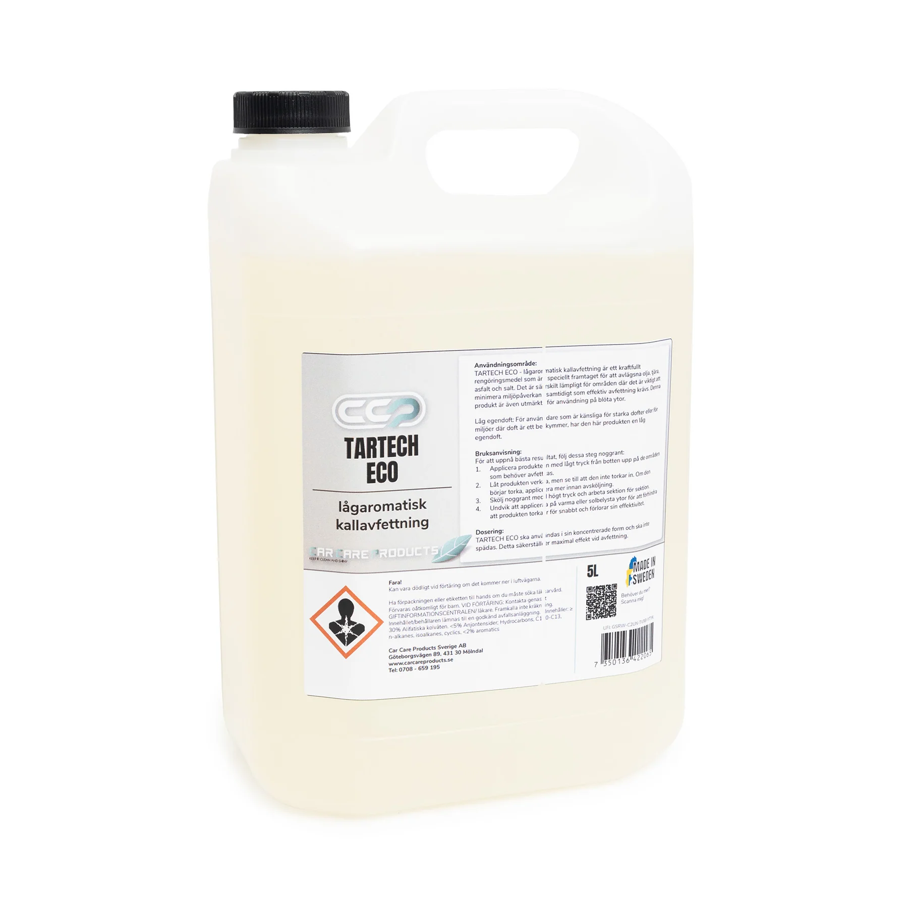 Tartech ECO är en lågaromatisk och miljövänlig kallavfettning som effektivt tar bort olja, asfalt, tjära och salt. Den är särskilt utvecklad för att ge kraftfull rengöring med minimal miljöpåverkan – perfekt för både professionellt bruk och miljömedvetna bilentusiaster.